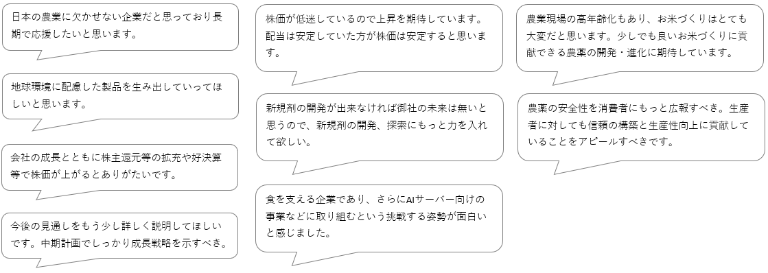 株主の皆さまからの声(一部抜粋)